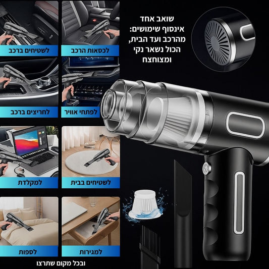 שואב אבק אלחוטי נייד סופר חזק – לרכב, לספות וכל פינה בבית