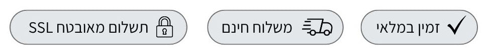 אנחנו עושים את כל המאמצים כדי שההזמנה שלך תגיע אליך במהירות, בבטחה ובשלמות.